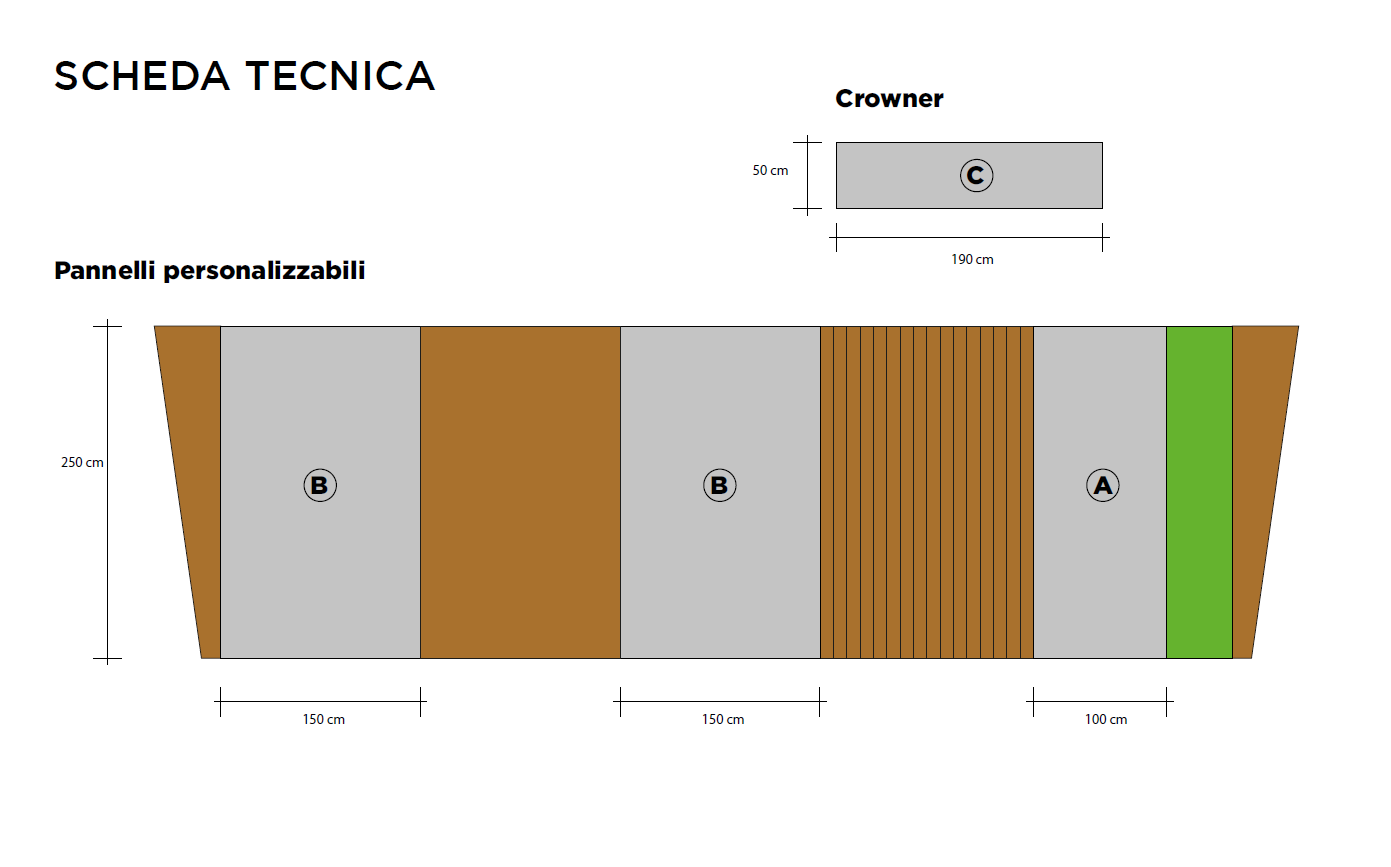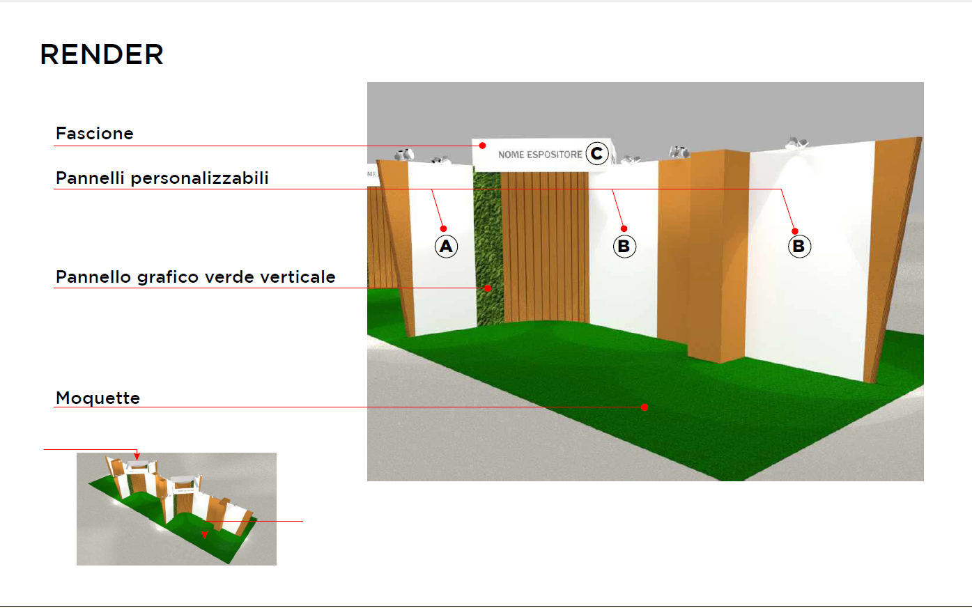 Il modello PRUA ad esclusione della moquette e di eventuali sistemi di ancoraggio è uno stand completamente