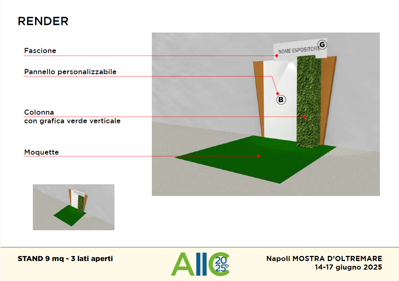 • crowner con il nominativo dell’espositore altezza 40-50 cm come da progetto allegato (la stampa del crowner